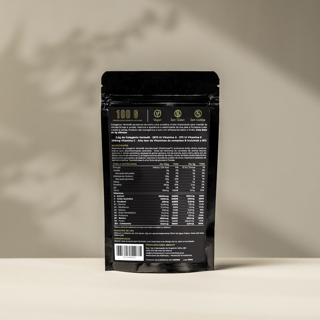 Colagénio Verisol® apresenta-se como uma proteína muito importante para manter as células firmes e unidas. Melhora a aparência e elasticidade da sua pele e fortalece o seu cabelo e unhas. Produto não transgénico e com um refrescante sabor a limão